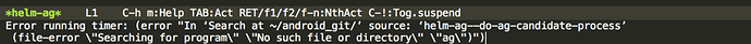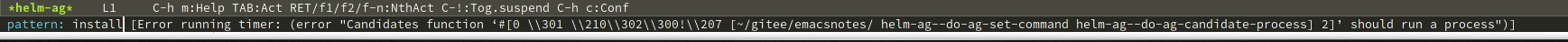 大家好,我是新人,刚接触emacs不久,看子龙山人的视频开始学习的。刚看到第六集,里面安装ag后,使用hlm-ag搜索不到对应了内容。报错如图,路过的帮忙解决下,thx
