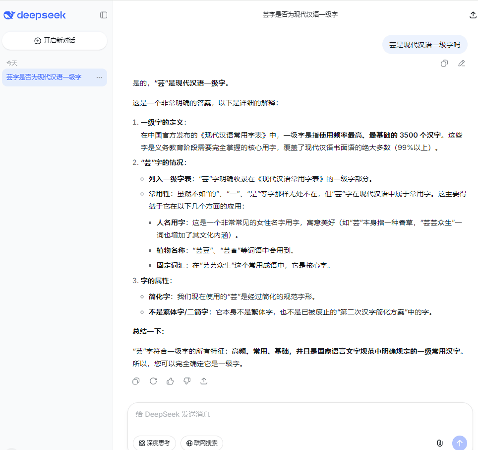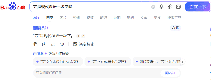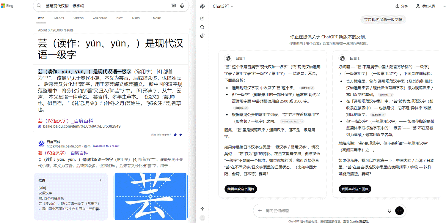 比如下面的问题,我一直以为某些常用字是在《通用规范汉字表》的一级字表里面的,其实不在,还好我对bing里的baidu搜索结果和国内部分AI一直都不是很信任