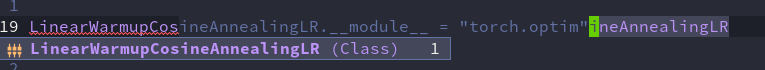补全列表有一项,目前输入是LinearWarmup,后面会出现两个CosineAnnealingLR