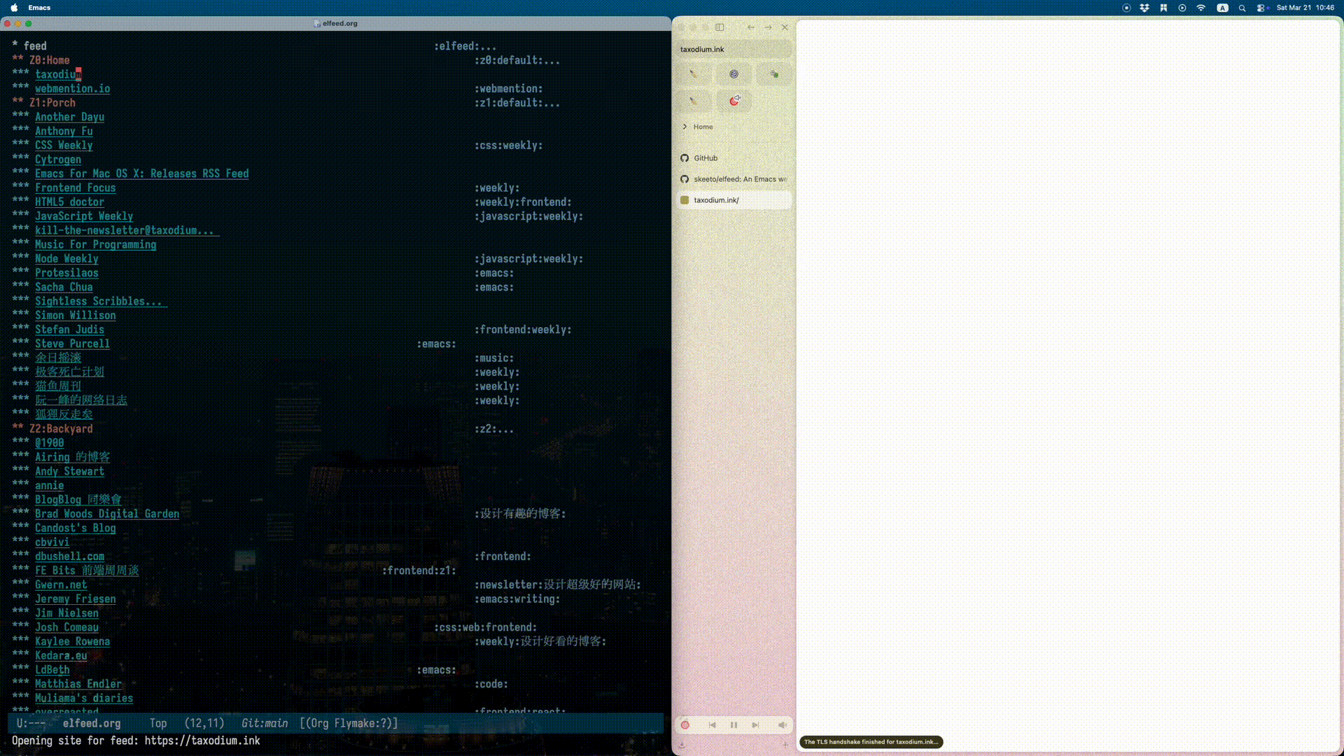 代码逻辑的解释记录在博客里: 在 Emacs 中用 Elfeed 阅读订阅流。