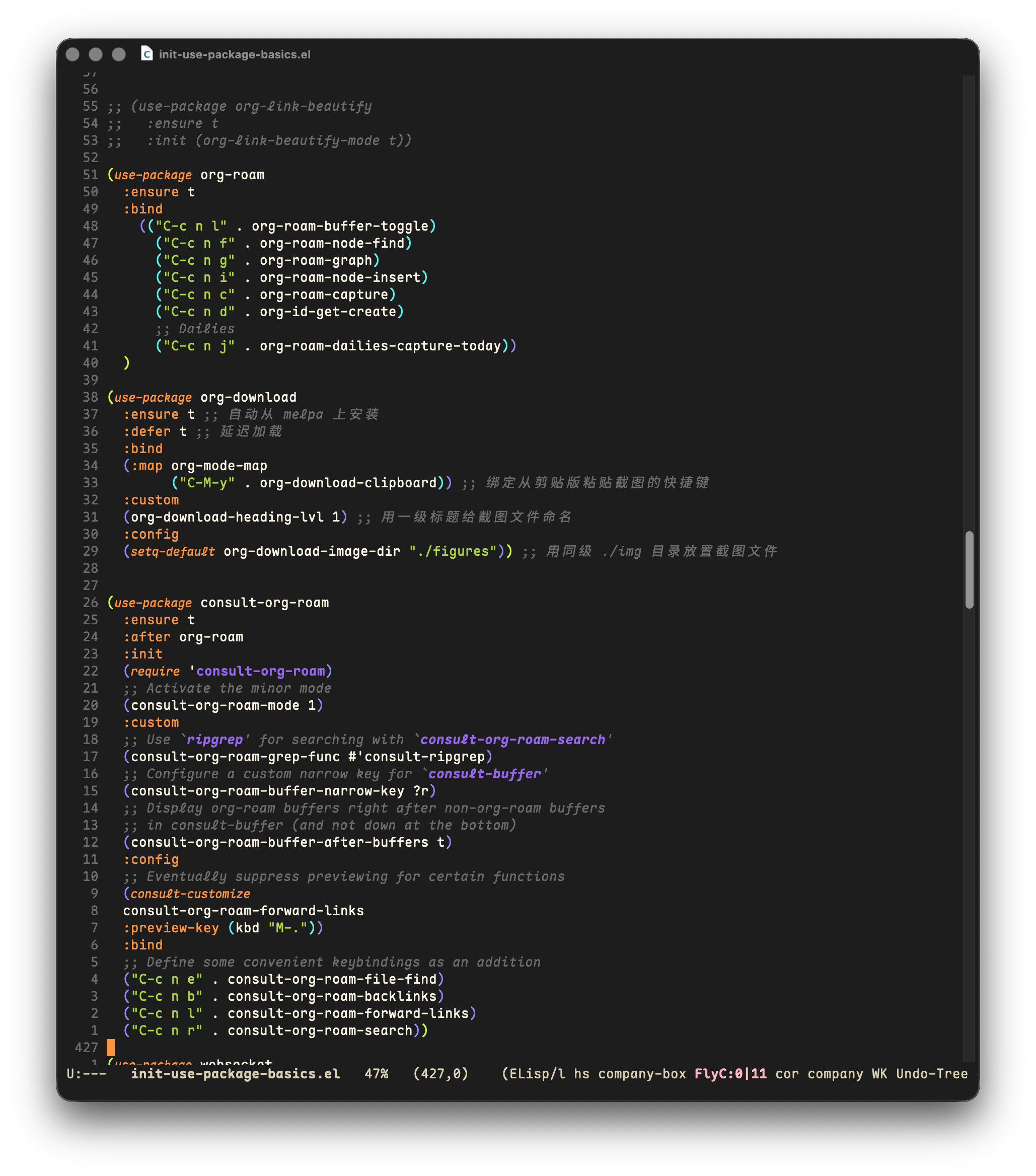 我喜欢花里胡哨的颜色,于是将 自己的 Emacs 也整的花里胡哨的,如图: