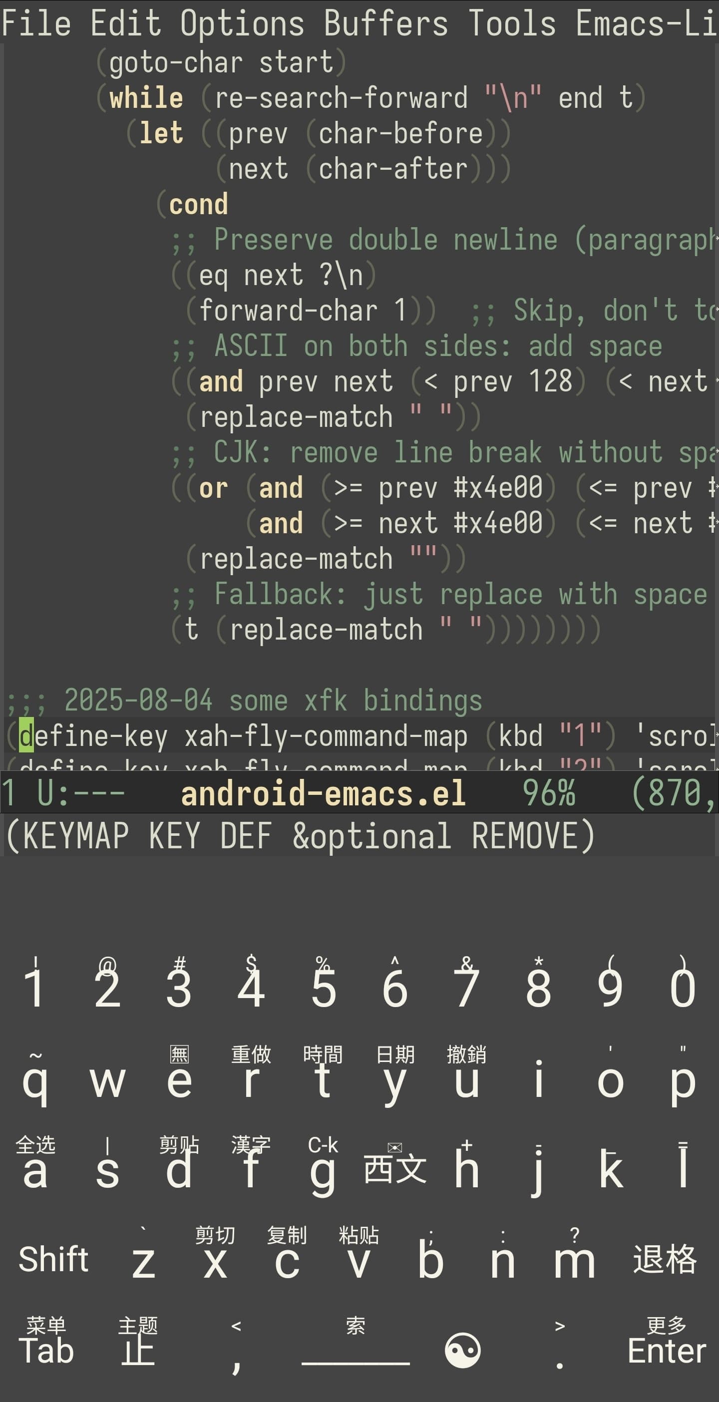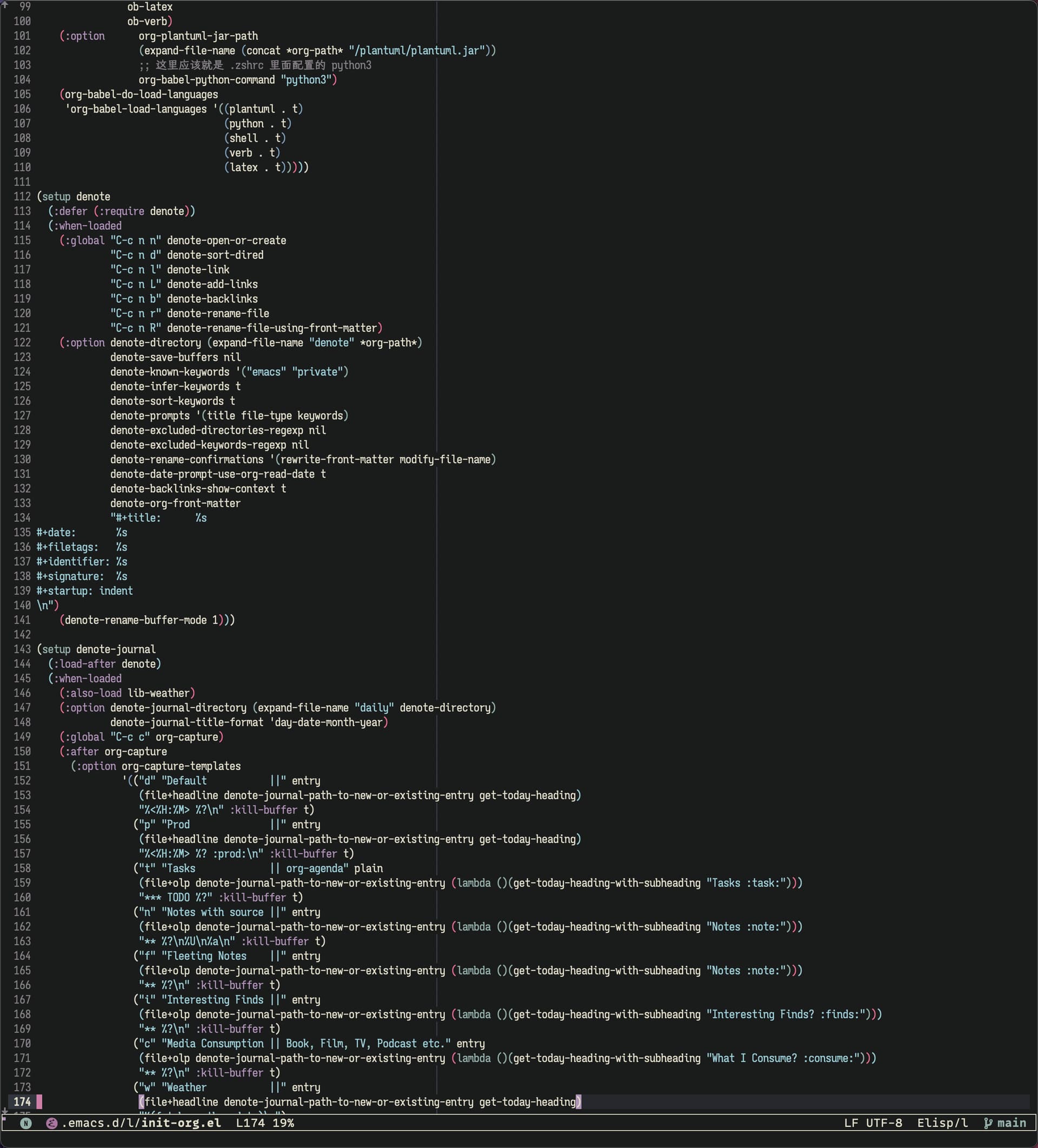 但最近使用量增加,還是感覺喜歡低對比度,偏深綠色系的 theme,於是換回了 zenburn(淺色主題還是用 modus-operandi)