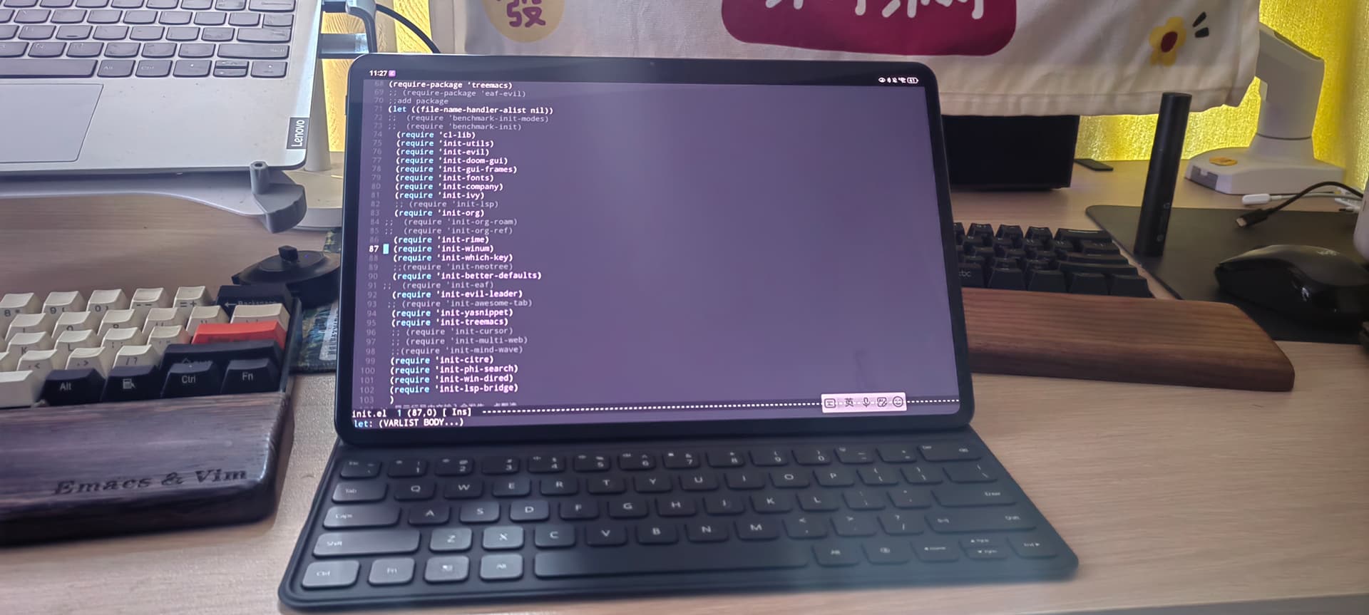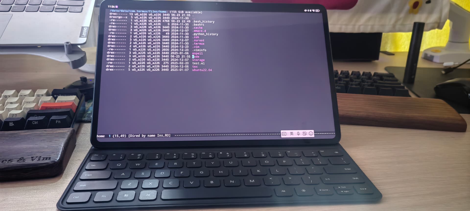 使用安卓平板加键盘可以移动使用,唯一的不便来自于诡异的配置文件地址。 所以我用termux加vim轻量使用,反正正经干活也轮不到安卓。