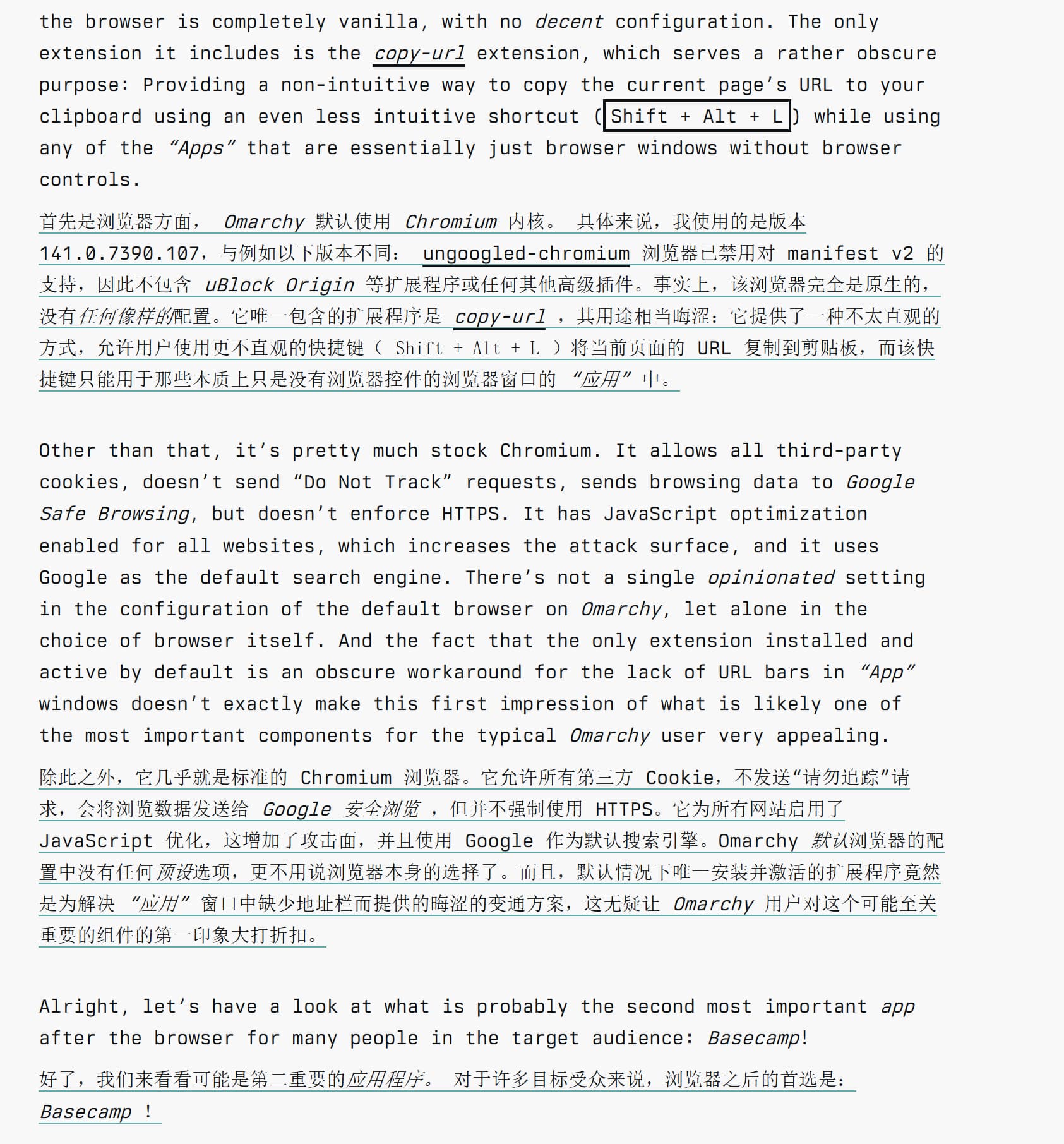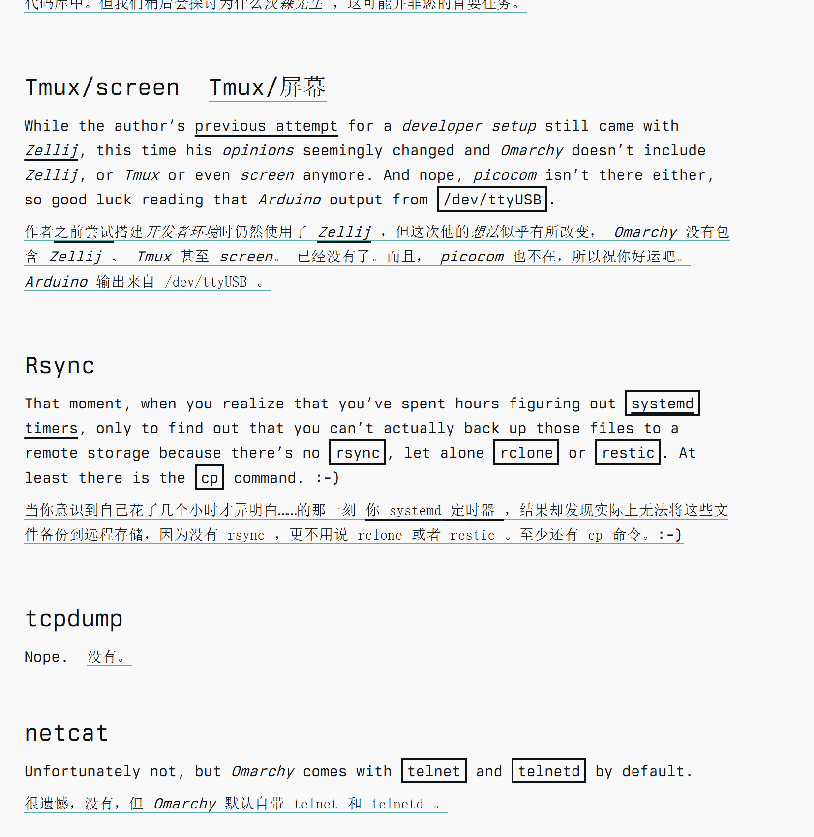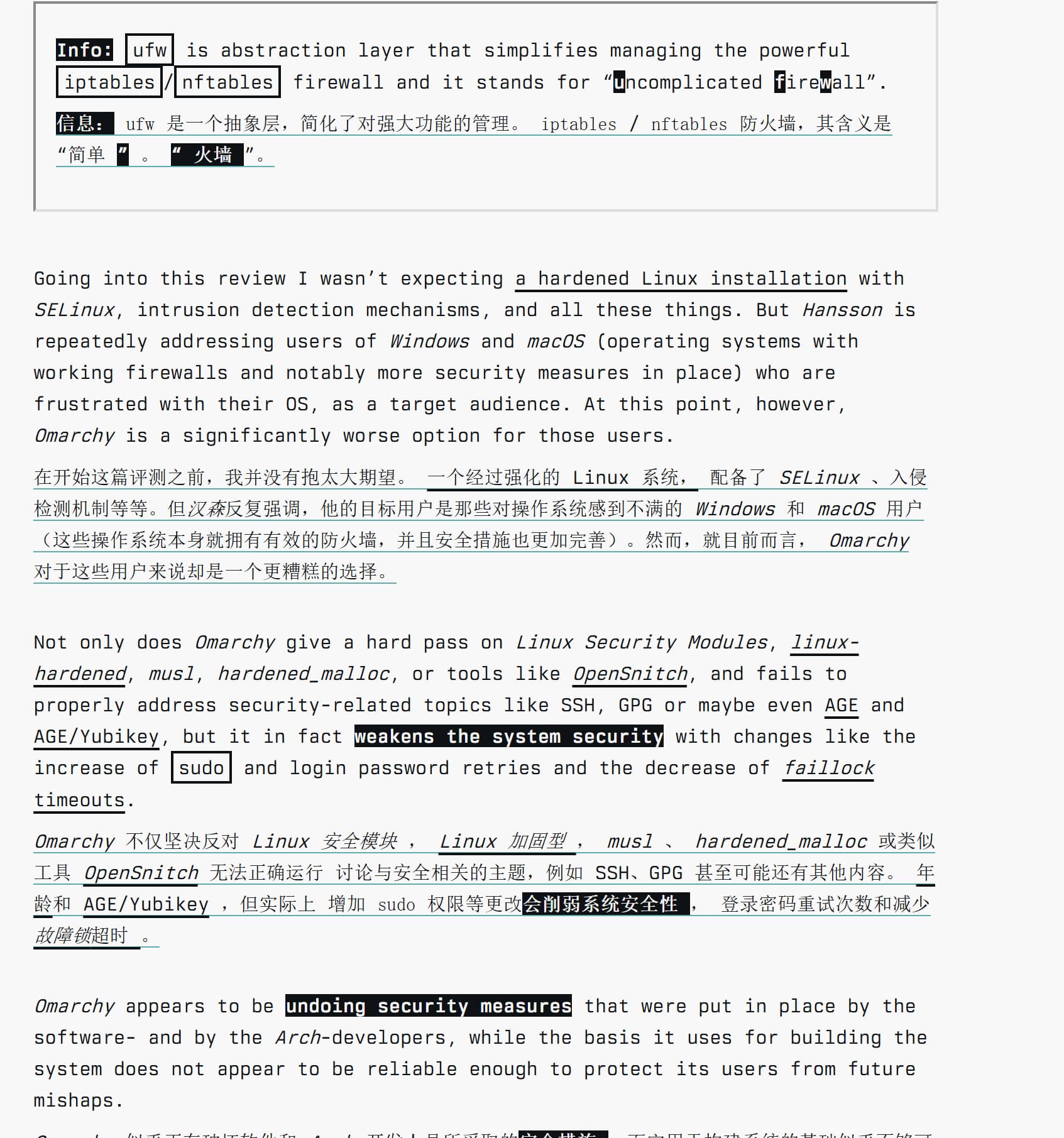 虽然我也不用omarchy,只是体验了下, 但是文章里说的大部分观点都没道理