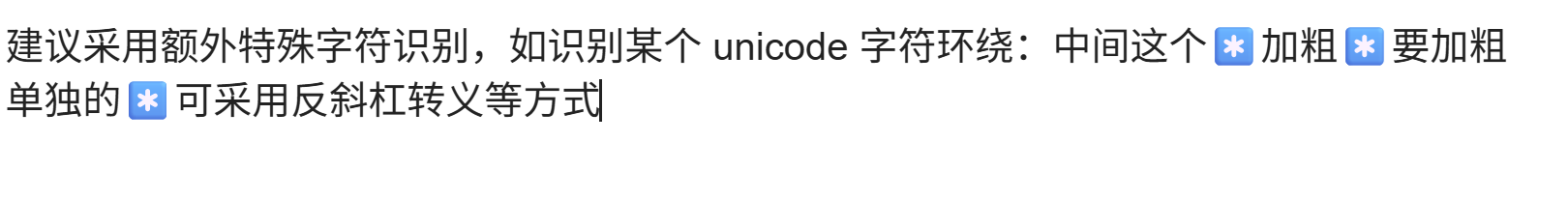 建议采用额外特殊字符识别,如识别某个 unicode 字符环绕:中间这个️⃣加粗 ️⃣要加粗