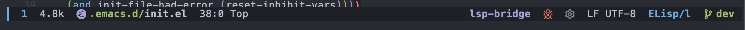 我最開始是用 powerline, 後來改用 moody 因為他啟動最快. 最後封裝成自己的一個包 GitHub - jcs-emacs/jcs-modeline: A modeline for jcs-emacs. 不過整體格式還是接近 powerline 自帶的格式.
