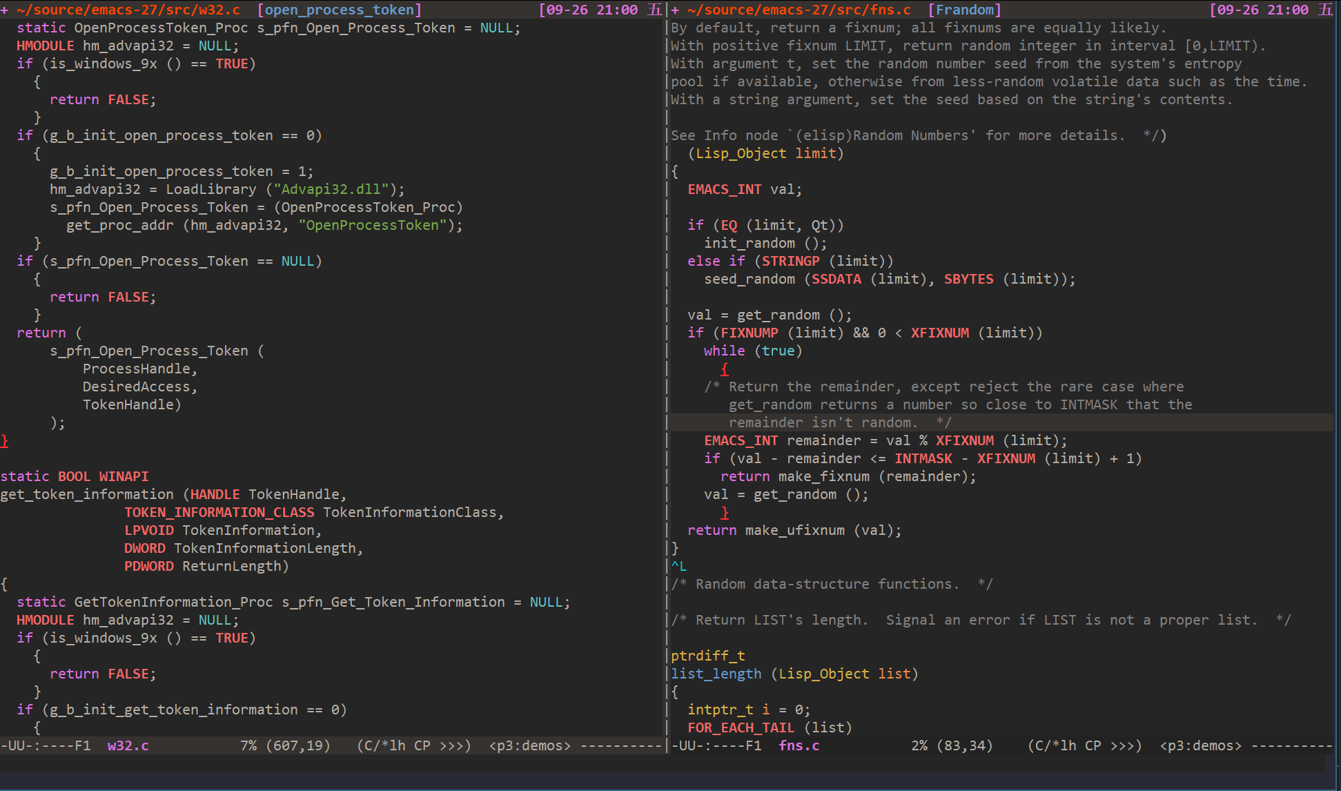 我日常基本都是多窗口,两窗口为主(宽屏很方便),每个窗口需要独立的信息,所以modeline和headerline都在用,另外会把emacs的系统标题栏隐藏。