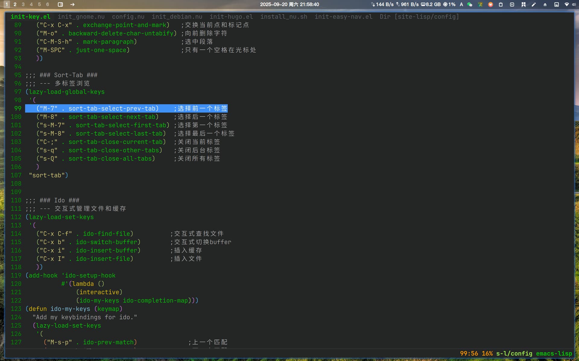 佩服大佬们,我的 modeline 还用的是原生自带的;感觉只有原生自带的流畅,要的信息基本上都有了,没有什么折腾的动力