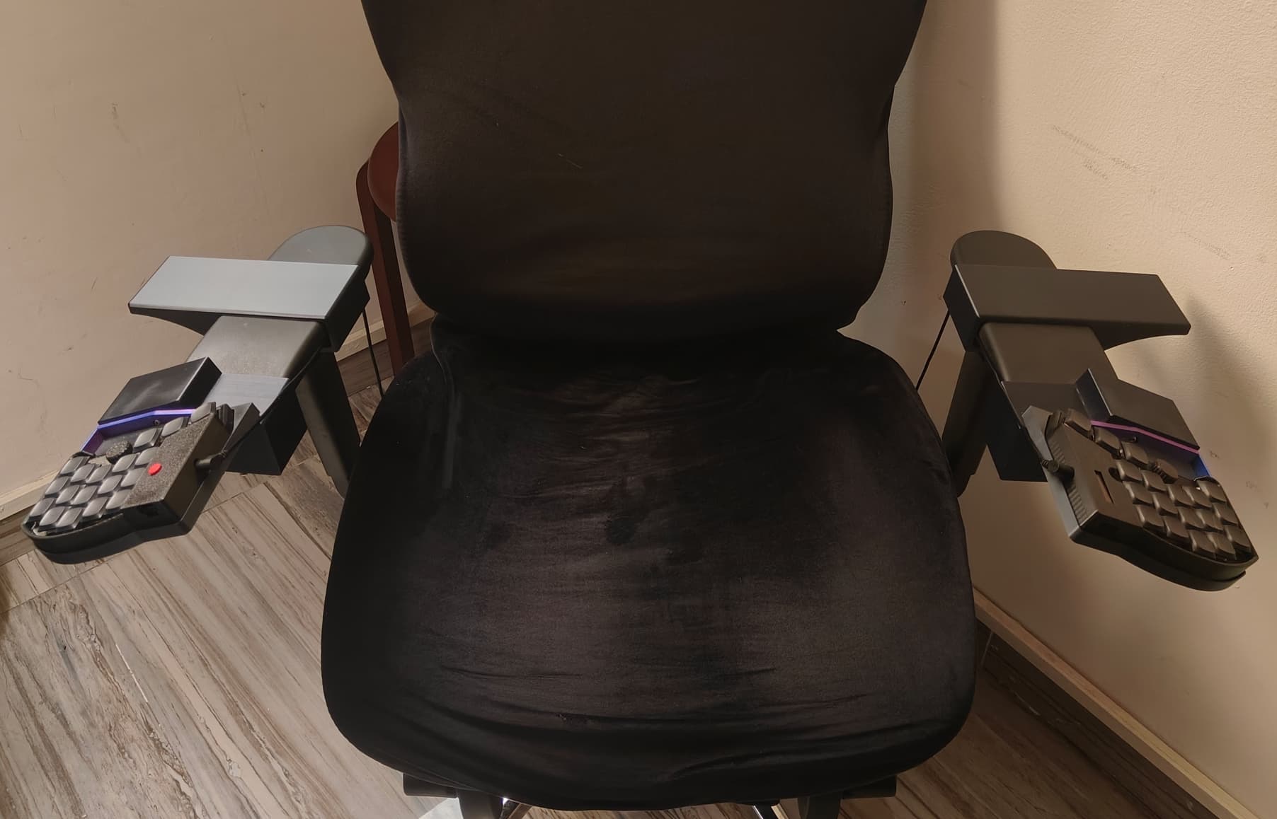- 可安装在人体工程学椅子的扶手上,不用趴着敲键盘,对颈椎友好。