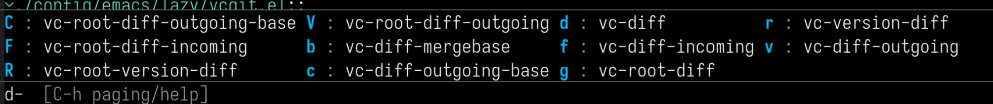 配合which-key-mode后效果与magit差相仿佛,效果上 进vc-dir目录运行的git命令相对较少,自然性能会好一些,当然功能也相对少很多,但对我来说够用了。